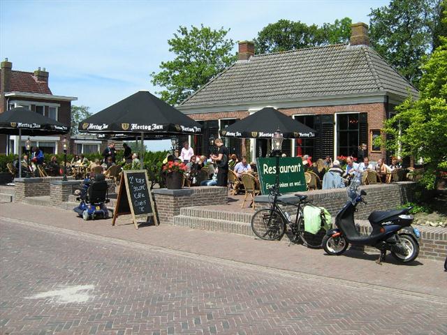Restaurant Waddengenot heeft een goed gevuld terras en aan wandelaars en fietsers geen gebrek.