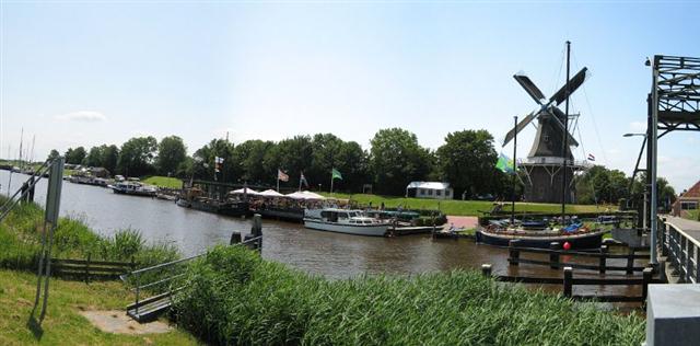 Bij de brug en de molen zijn gezellige terrasjes, er word gezwommen in het Reitdiep en