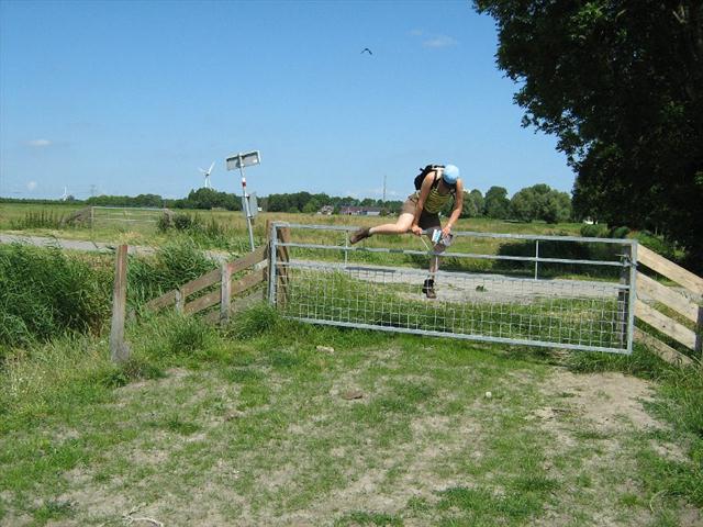 Al snel is het hekjes klimmen. De route volgt een oud kerkenpad.