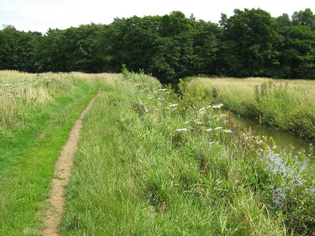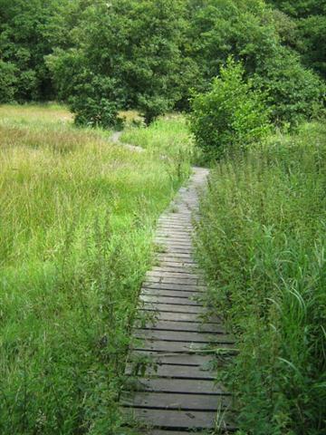 In de buurt van het riviertje is het nat en drassig. Voor de wandelaars heeft