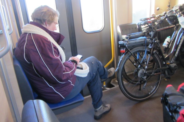 In de trein.