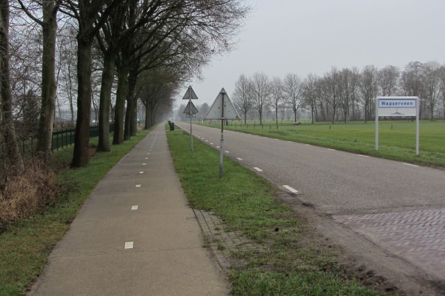 Het is nog heel erg stil als we over binnenwegen en fietspaadjes richting Wapserveen rijden.