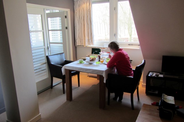 De dag begint met een vorstelijk ontbijt in onze B&B voor vandaag, De hooge stukken in Eelde.