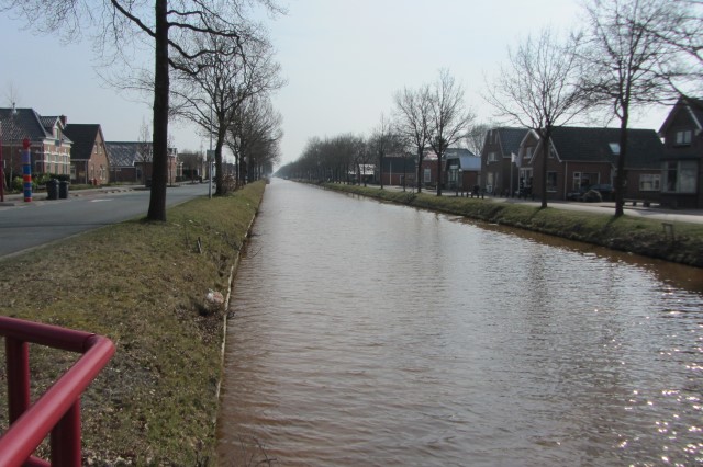Bij Eerste Dwarsdiep gaan we linksaf. We fietsen nu over de Ingenieur van Veelenweg.