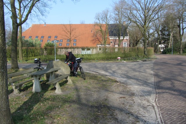 We pauzeren dan ook maar even bij een bankje in Zuidlaarderveen.