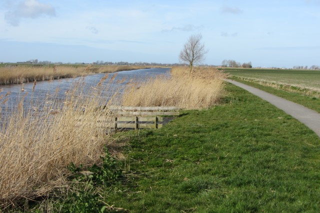 Langs de dokkumer Ee is het even flink tegen de wind in trappen.