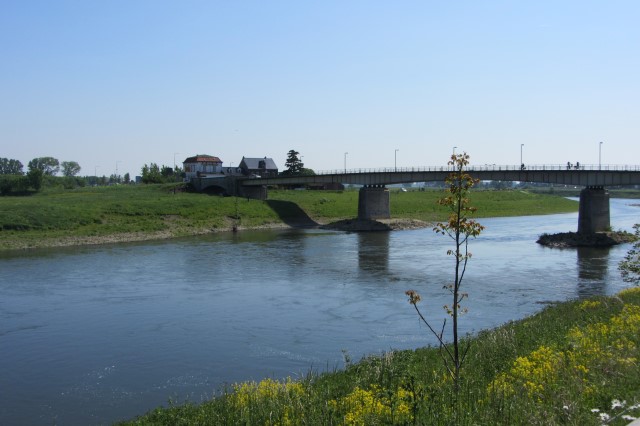 We steken hier de Maas over en realiseren ons ineens dat we Nederland verlaten.