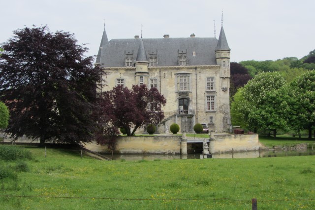 Bij Oud-Valkenburg fietsen we om kasteel Schaloen heen.