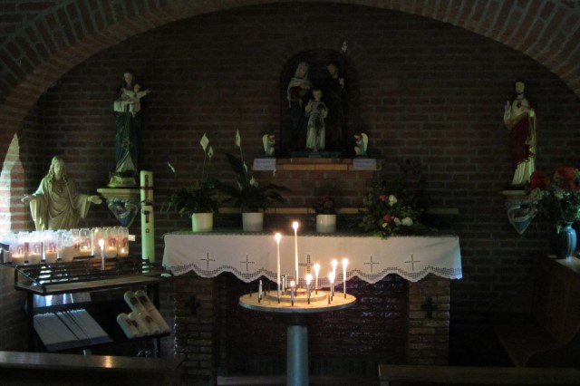 Aan de rand van het dorp stoppen we even bij de kapel van Onze Lieve Vrouwe in het Sant.