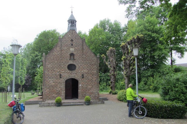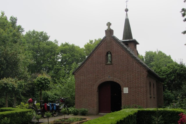 We fietsen langs de Houthuizer heide en komen bij de buurtkapel van Houthuizen.