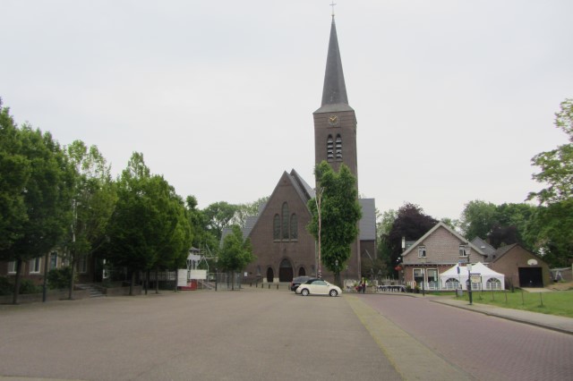 De route gaat verder door het centrum van Neer, langs de Martinuskerk.